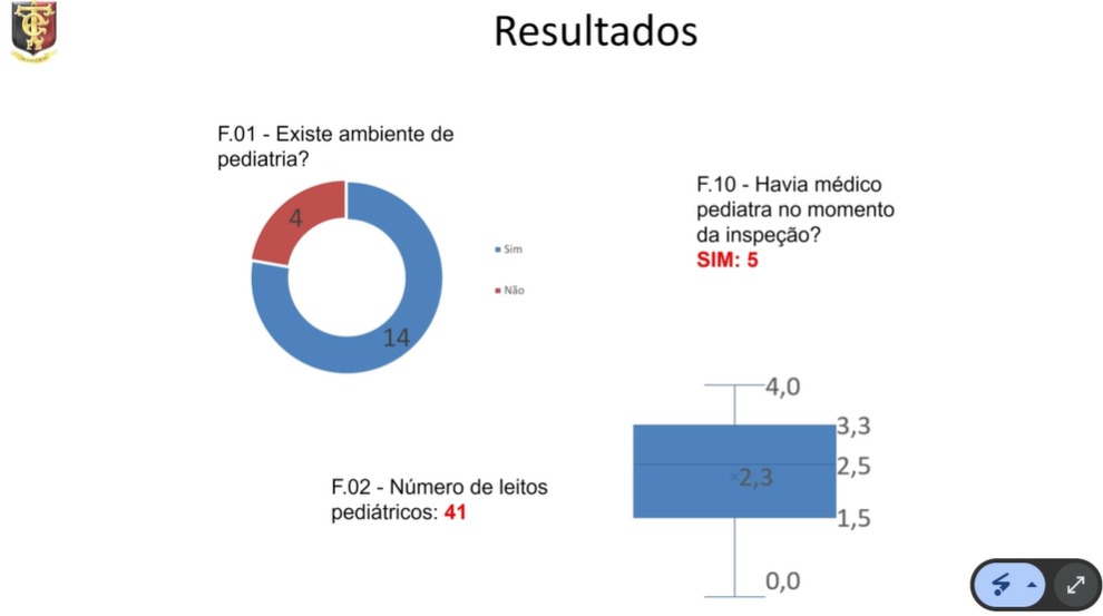 No atendimento pediátrico, 14 unidades possuem ambientes destinados a crianças, enquanto quatro não contam com essa estrutura. Mesmo entre as que possuem ala pediátrica, apenas cinco médicos pediátricos estavam em serviço no momento da inspeção.