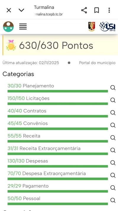 O sistema foi atualizado no último dia 02 de novembro e já exibe os resultados alcançados pelos municípios paraibanos, demonstrando o desempenho e o nível de transparência de cada gestão.