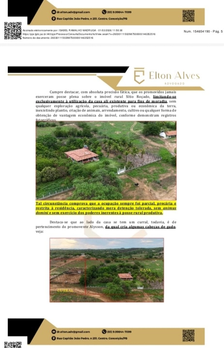 A ação de Reintegração de Posse o processo nº 0800303-14.2026.8.15.0151 foi impetrada com uma base legal robusta: a posse dos réus sempre foi precária, um mero ato de "permissão ou tolerância", sem qualquer "animus domini" , ou seja, sem a intenção de ser dono. O documento da defesa enfatiza que não houve "qualquer exploração agrícola, pecuária, produtiva ou econômica da terra", reforçando que a ocupação se limitava à casa e não ao sítio como um todo. A existência de outra residência dos réus em Santana de Mangueira/PB desmistifica qualquer alegação de extrema necessidade de moradia, expondo a natureza oportunista de sua permanência.